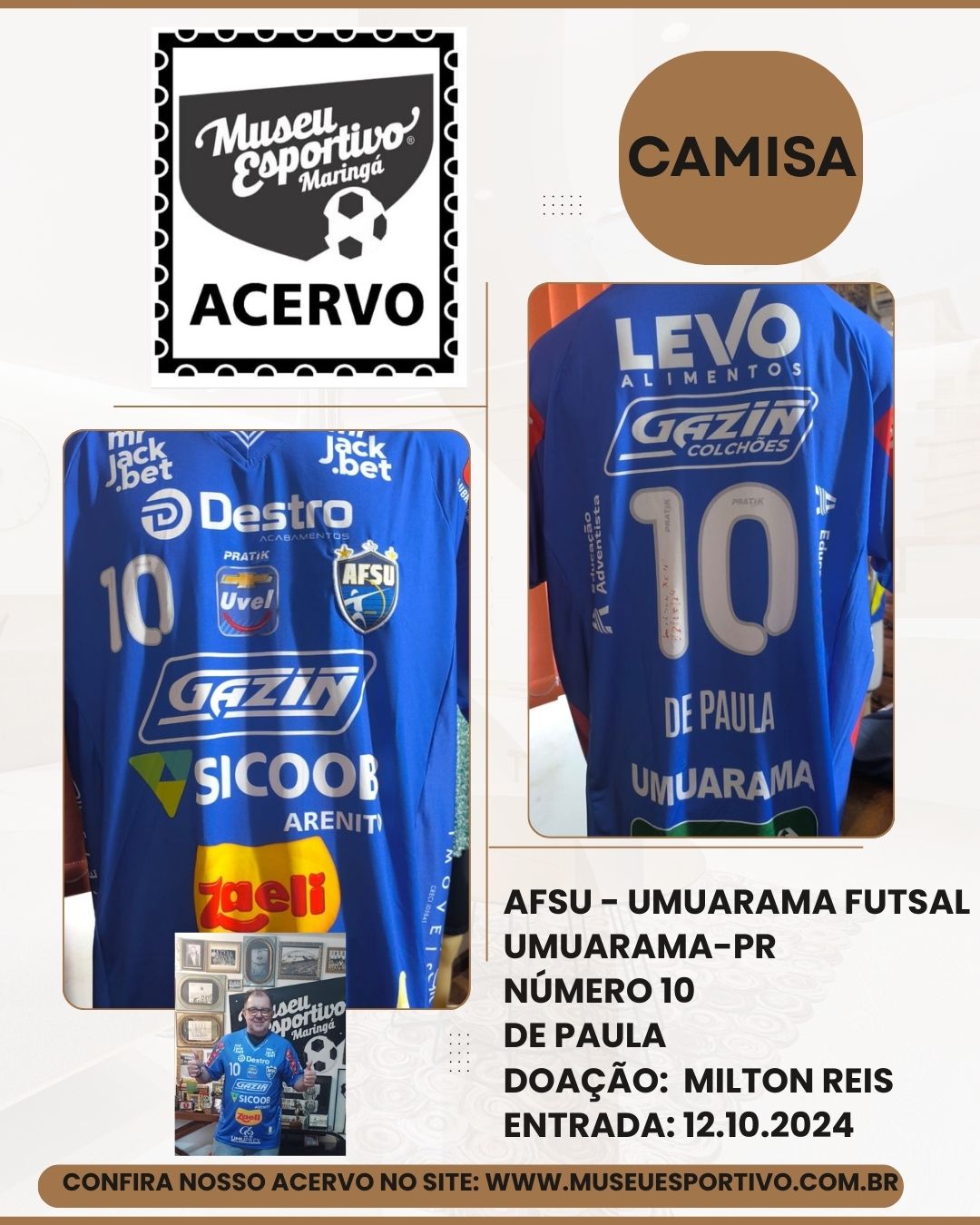 Camisa da Associação Banestado de Maringá, que pertenceu ao atleta Custódio André Neto, década de 1970. (Modelo diferente)