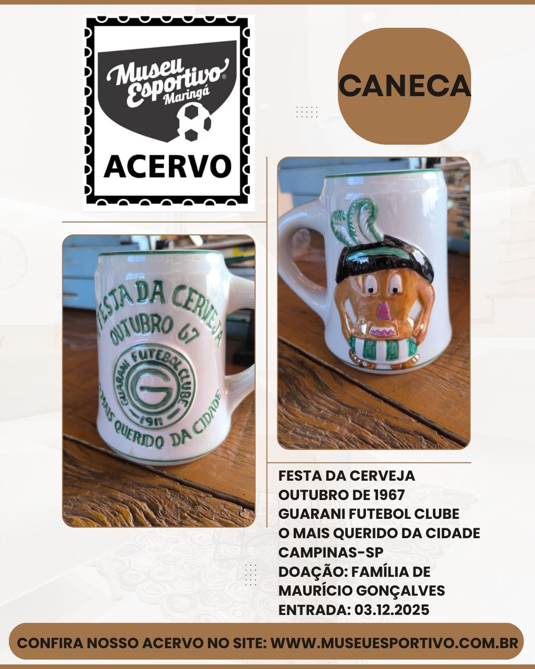 Antonio da Silveira Franco, o Seu Toninho, esteve no Museu Esportivo de Maringá no dia 11 de janeiro de 2020 levando uma caixa com 125 revistas esportivas antigas: Revista do Esporte, Manchete Esportiva e Placar. Apaixonado por futebol, o palmeirense Toninho conhece a história dos clubes brasileiros e de seus principais jogadores desde a década de 1950, tendo cole