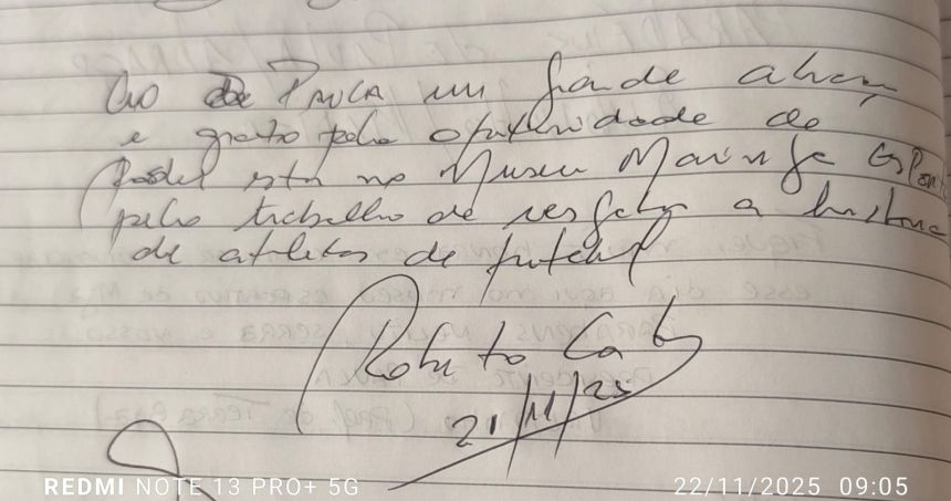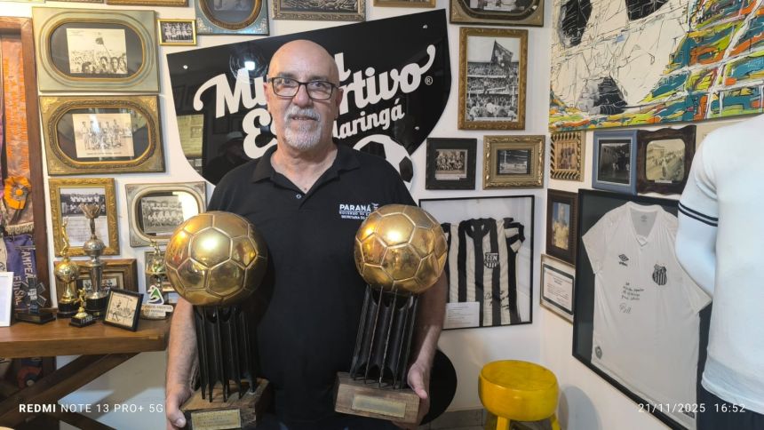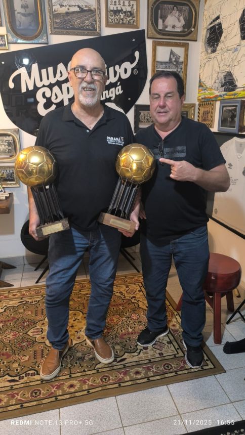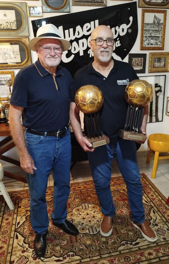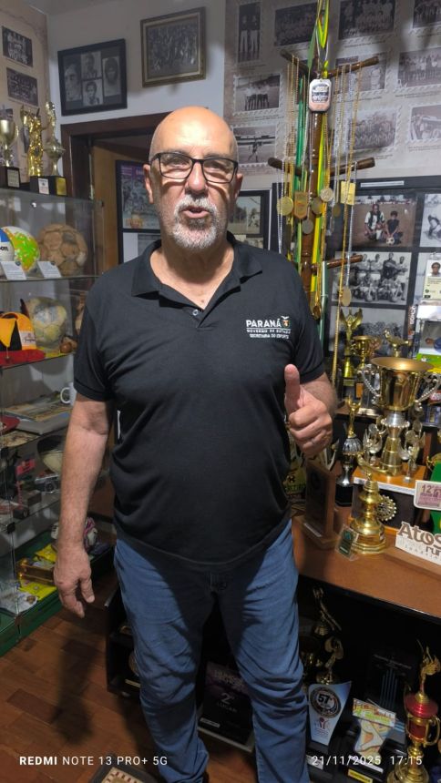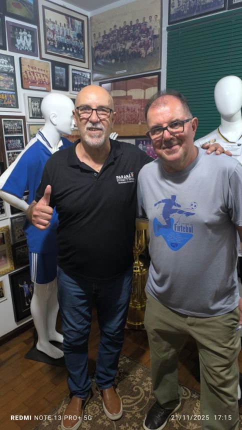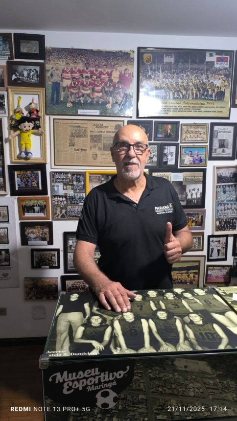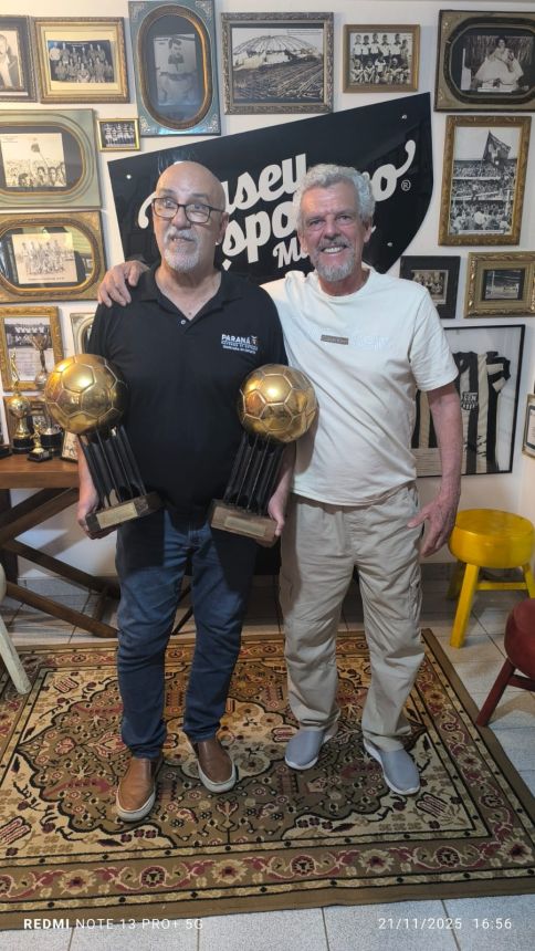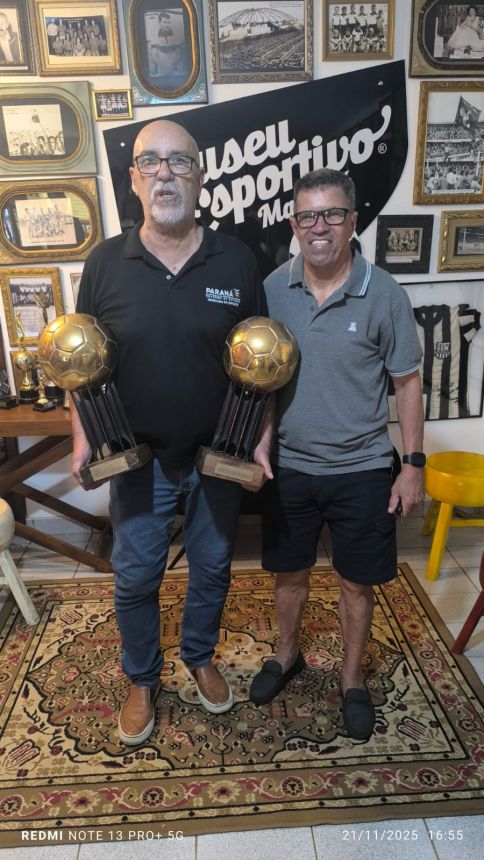 O Museu Esportivo de Maringá recebeu no dia 21 de novembro de 2025 a honrosa visita de um dos maiores goleiros da história do futebol brasileiro, que brilhou intensamente na década de 1980 vestindo as camisas do Athletico e do Vasco da Gama. Roberto Costa conquistou em duas ocasiões, 1983 e 1984, o maior prêmio do futebol brasileiro na época: a bola de ouro da revista Placar, sendo considerado o melhor jogador do Brasil nos campeonatos brasileiros daqueles anos, feito que o levou à seleção brasileira. Trabalhando no escritório regional da Secretaria Estadual do Esporte, em Foz do Iguaçu, Roberto Costa esteve a trabalho em Maringá e, a convite de Marcio Stabille, nosso parceiro do MEM, ele esteve na sede do Museu Esportivo e gentilmente trouxe as duas bolas de ouro, que estão em exposição na Secretaria de Esporte em Curitiba. Um grupo de amigos liderado pelo presidente do MEM, Antonio Roberto de Paula, recepcionou o goleiro que nasceu em Santos e iniciou a brilhante carreira no clube da Vila Belmiro na década de 1970. Ney Santos, que trabalha na Secretaria de Esporte, no gabinete do secretário Helio Wirbiski e que também estava em Maringá a trabalho, conheceu o Museu Esportivo de Maringá e destacou a carreira de Roberto Costa, de quem é amigo. Walter Guerlles e Aldi César Mertz, assim como De Paula, em nome dos presentes, falaram da alegria e satisfação de receber a ilustre visita. Roberto Costa agradeceu, parabenizou a equipe do MEM pelo trabalho de resgate e preservação da memória que está sendo realizado desde 2014, fez fotos e vídeos com o grupo, esteve em todas as dependências da nossa casa da memória e se disse impressionado com o grande volume de peças do nosso acervo. Esta foi a primeira visita de Robertgo Costa ao MEM, mas ele acompanha nosso trabalho desde 2014, no Facebook e no YouTube, quando começamos a divulgar o MEM na Internet. Ele doou para a biblioteca do Museu Esportivo um exemplar do seu livro, que tem Josias Lacour como autor, 'Roberto Costa - biografgia do goleiro Mão de Anjo', com autógrafo e dedicatória. No livro de registro de visitas, o histórico goleiro escreveu: 'Ao De Paula um grande abraço e grato pela oportunidade de poder estar no Museu. Parabéns pelo trabalho de resgatar a história do futebol. Roberto Costa 21.11.25'. Prestigiaram a visita de Roberto Costa, além de De Paula, Guerlles, Aldi, Marcio Stabille e Ney Santos, os amigos Luis Antonio, Augusto, Vilmar Pássaro, Pedrinho Calombinho, João Vizinho, Márcio Grego e Cido Macarrão.